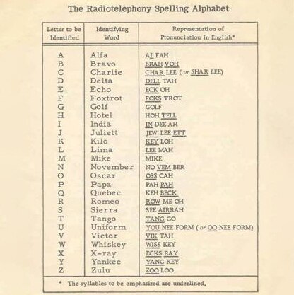 उदाहरण के तौर पर इसमें A से Alpha, B से Bravo, C से Charlie, D से Delta और L से Lima होता है. साथ ही इन शब्दों के उच्चारण के लिए भी व्याकरण तय है. ताकि अलग-अलग पृष्ठभूमि और भाषा क्षेत्र से आने वाले लोग एक ही तरह से इन कोड वर्ड्स का प्रयोग करें.