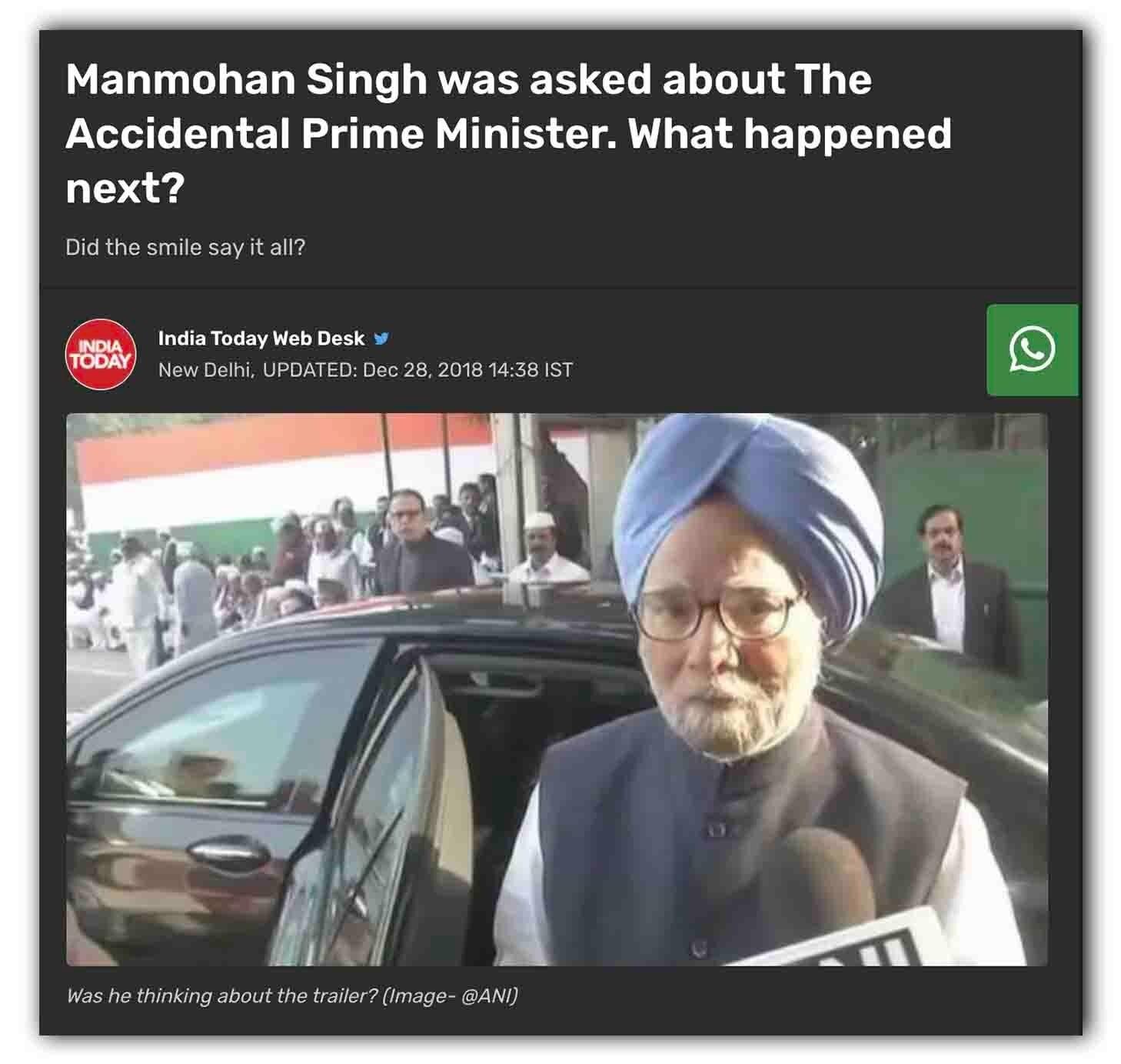 इस रिपोर्ट के मुताबिक, 27 दिसंबर 2018 को इस फिल्म का ट्रेलर रिलीज हआ था. इसके बाद से तमाम राजनेता इस पर अपनी राय दे रहे थे. खोजने पर हमें समाचार एजेंसी 'एएनआई' के ट्विटर हैंडल पर ये वीडियो मिल गया. 28 दिसंबर 2018 को किए गए इस ट्वीट के कैप्शन में लिखा है, “पूर्व पीएम मनमोहन सिंह द एक्सीडेंटल प्राइम मिनिस्टर पर सवालों से बचते हुए दिखाई दिए.”