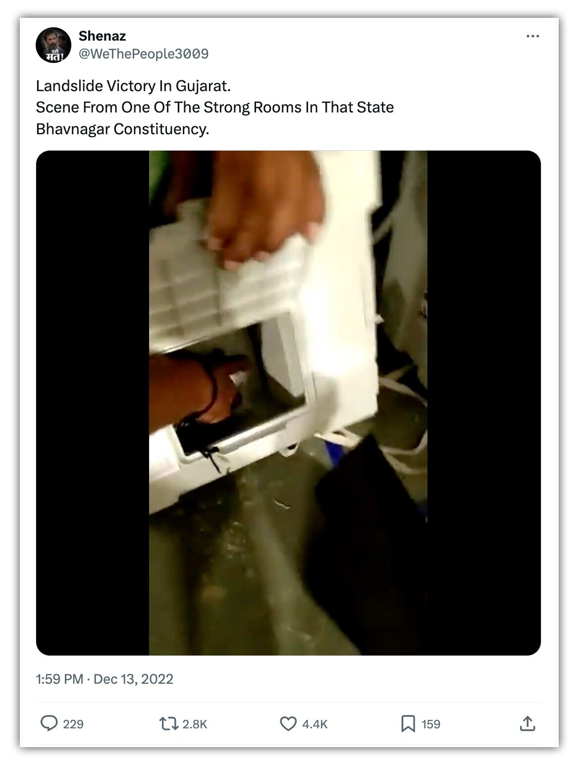 वायरल वीडियो के कीफ्रेम्स को रिवर्स सर्च की मदद से खोजने पर हमें ये वीडियो दिसंबर 2022 में कई एक्स यूजर्स द्वारा शेयर किया हुआ मिला. इन पोस्ट्स में इसे गुजरात विधानसभा चुनावों के समय का बताया गया था और चुनावों में भाजपा की जीत पर तंज कसा था. एक्स पर एक पोस्ट के मुताबिक ये वीडियो गुजरात के भावनगर का है. इससे ये बात तो साफ हो जाती है कि इस वीडियो का 2024 लोकसभा चुनावों से कोई लेना-देना नहीं है.