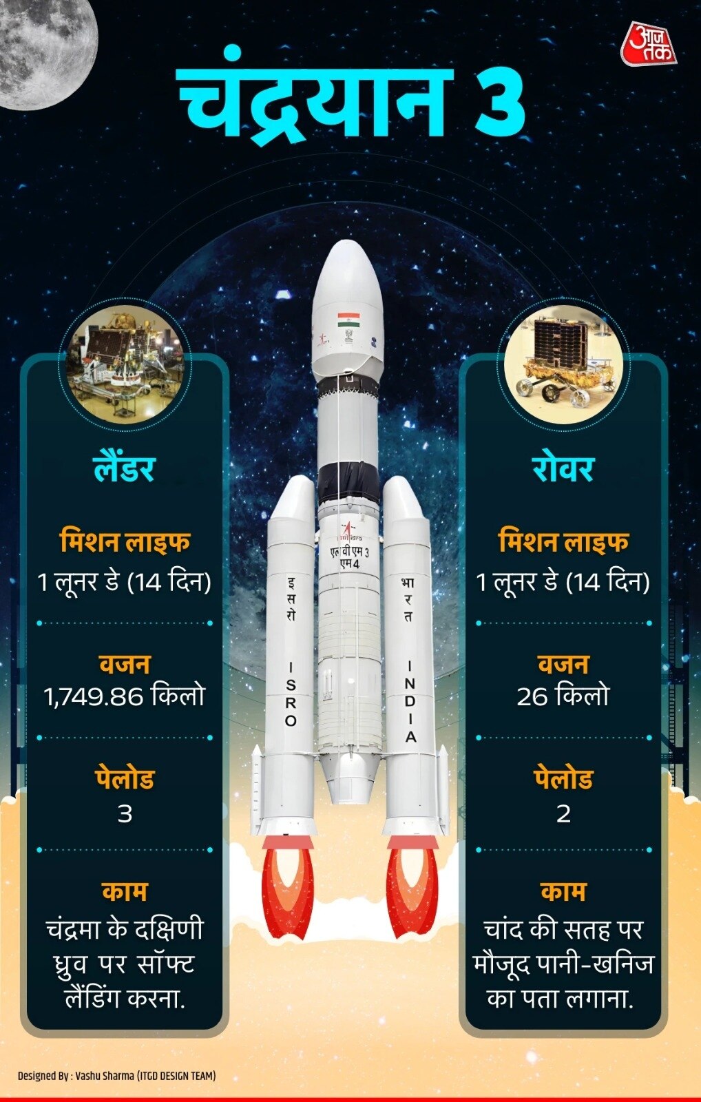 भारत का तीसरा मून मिशन चंद्रयान-3 सफल हो गया है. बुधवार शाम 6 बजकर 4 मिनट पर चंद्रयान-3 के लैंडर ने चांद की सतह पर सॉफ्ट लैंडिंग की. लैंडिंग के दो घंटे और 26 मिनट बाद लैंडर से रोवर भी बाहर आ गया है.