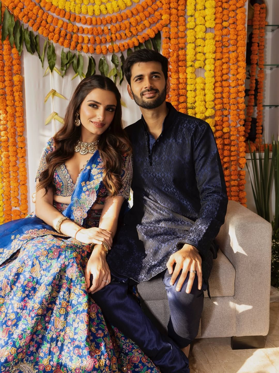 प्रकृति के होने वाले दूल्हे राजा भी ब्लू कुर्ते पायजामे में दिखाई दिए. दोनों ने एक साथ कई रोमांटिक पोज दिए. उनकी केमिस्ट्री चर्चा में है.