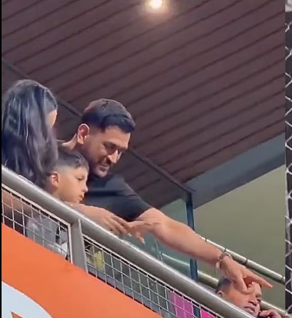 धोनी, अगस्त्य से इशारा करते हुए कहते हैं कि पापा नीचे से वेव कर रहे हैं. इस दौरान माहिका बेहद खुश नजर आईं. धोनी, माहिका, हार्दिक और नन्हे अगस्त्य को एक फ्रेम में देखकर फैन्स गदगद हो गए हैं.