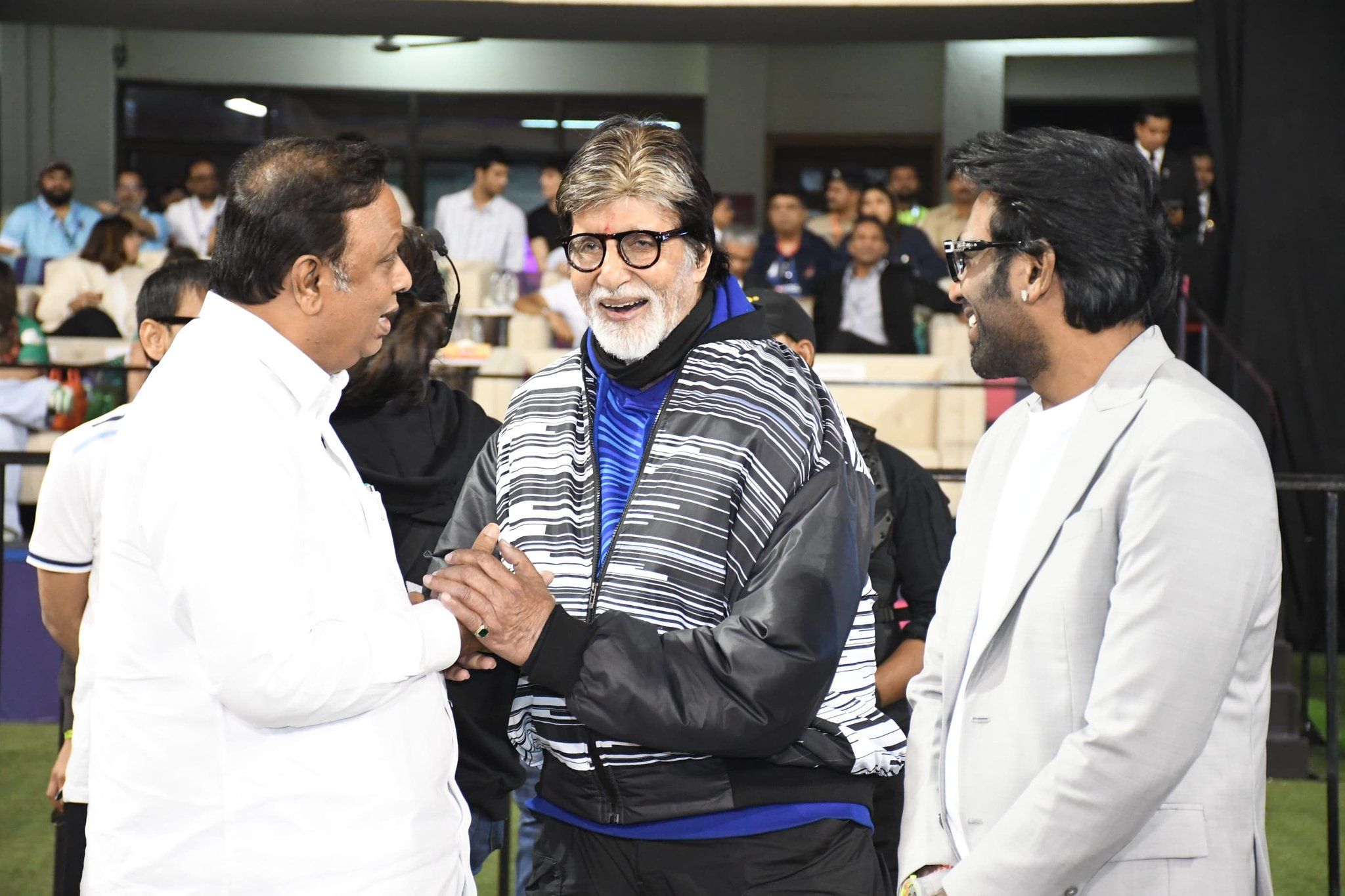 बॉलीवुड महानायक अमिताभ बच्चन, अक्षय कुमार, सूर्या और राम चरण गुरुवार को सूरत में इंडियन स्ट्रीट प्रीमियर लीग (ISPL) के सीजन तीन के उद्घाटन समारोह में पहुंचे.