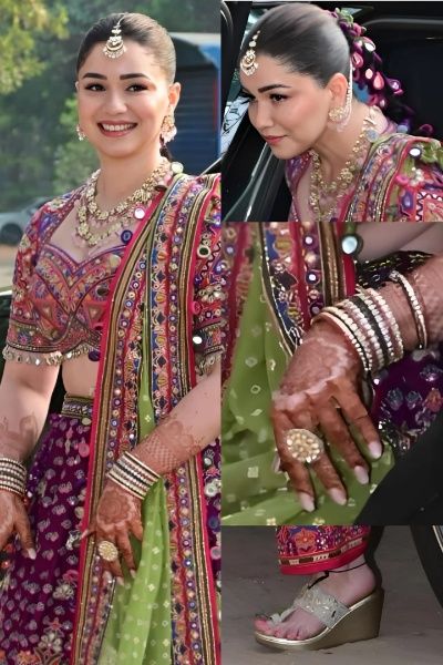 पिंक-पर्पल लहंगे के साथ उन्होंने पिस्ता ग्रीन रंग का बांधनी दुपट्टा कैरी किया, जिसके बॉर्डर पर लगी लटकन काफी खूबसूरत थी, इस आउटफिट में वो किसी राजकुमारी से कम नहीं लग रही थीं.