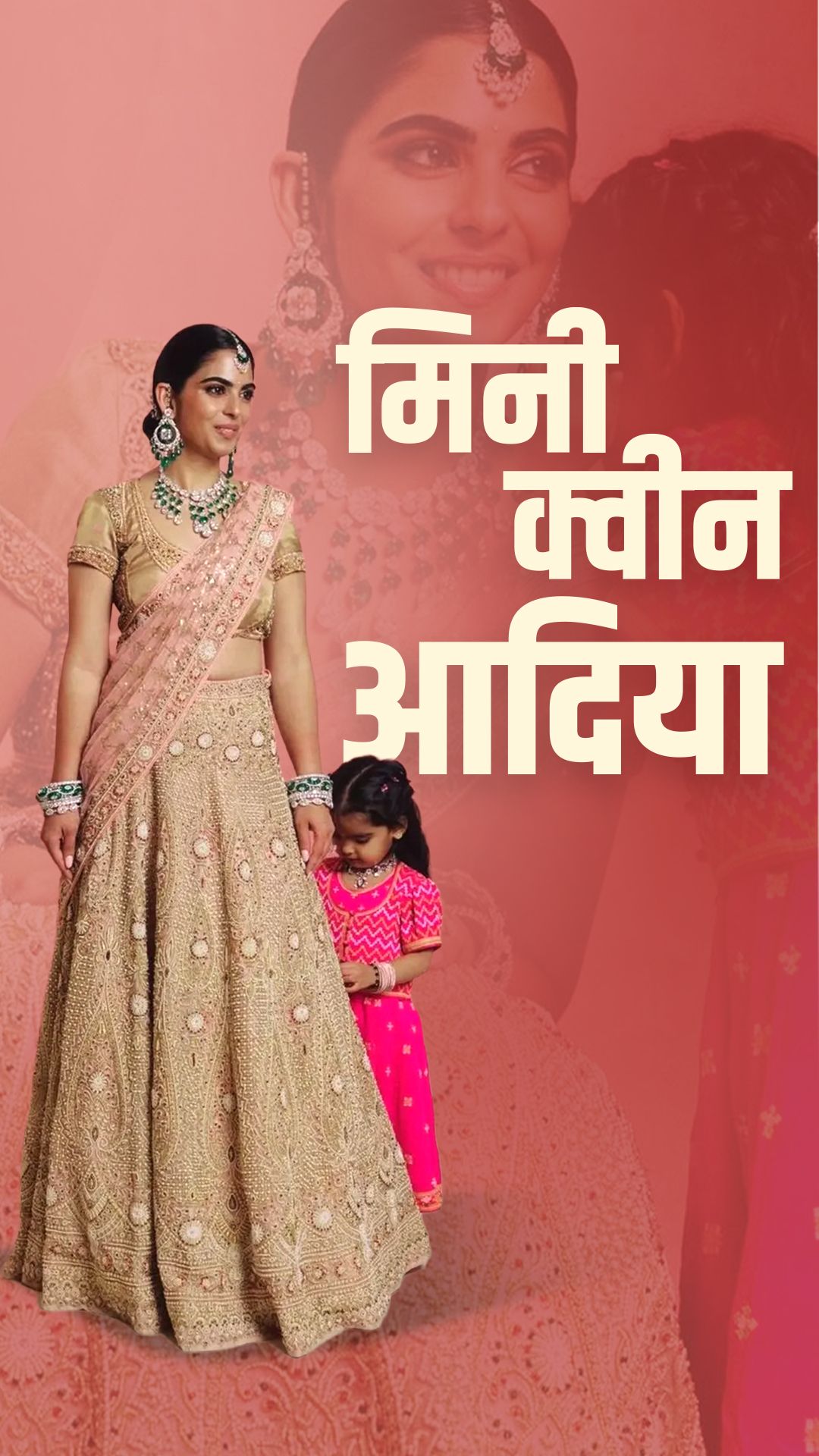 दरअसल, वायरल तस्वीरों में पिंक घाघरा चोली पहन आदिया अपनी मां ईशा के कान में फुसफुसाती और उनके लहंगे के साथ छेड़खानी करती नजर आ रही है.