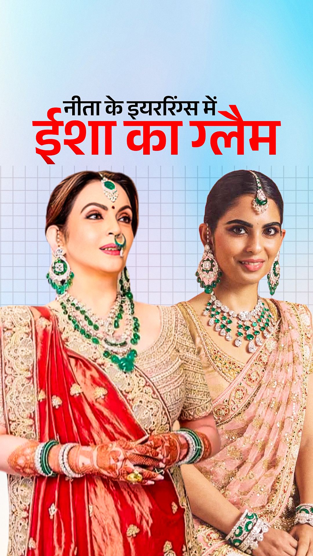उन्होंने हाथों में कंगन और मांग टीका भी पहना था. लेकिन सबसे खास उनके कानों में पहने इयररिंग्स रहे, जो उनकी मां नीता अंबानी के थे. नीता ने ये इयररिंग्स बड़े बेटे आकाश अंबानी की शादी में पहने थे.