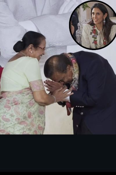 दरअसल, एक तस्वीर में मुकेश अंबानी अपनी बड़ी बहू श्लोका मेहता की दादी के सामने हाथ जोड़कर और सिर झुकाकर प्रणाम करते दिख रहे हैं.