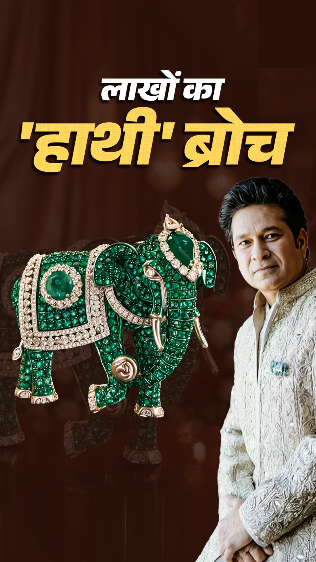 हाथी के सिर पर बड़े टियरड्रॉप शेप एमराल्ड से बना क्राउन जैसा डिजाइन था और इसमें हीरे जड़े थे. इस खास ब्रोच ने सचिन के पूरे लुक को और भी शानदार बना दिया.