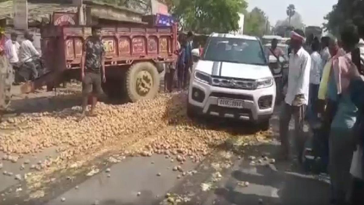 इस बार आलु की पैदावार काफी अच्छी हुई है. किसानों को उम्मीद थी कि बंपर मुनाफा हासिल होगा. हालांकि, किसानों को 1 किलो आलू की खरीद पर 4 रुपये भी नहीं नसीब हो रहा है. किसान उपज स्टोर करना चाहते हैं, लेकिन कोल्ड स्टोरेज की सुविधा भी नहीं है. परेशान किसानों ने एनएच 28 सड़क पर ही आलू फेंक कर सरकार के खिलाफ प्रदर्शन किया. प्रदर्शन के दौरान किसानों ने केन्द्र सरकार व राज्य सरकार के खिलाफ जमकर नारेबाजी की.