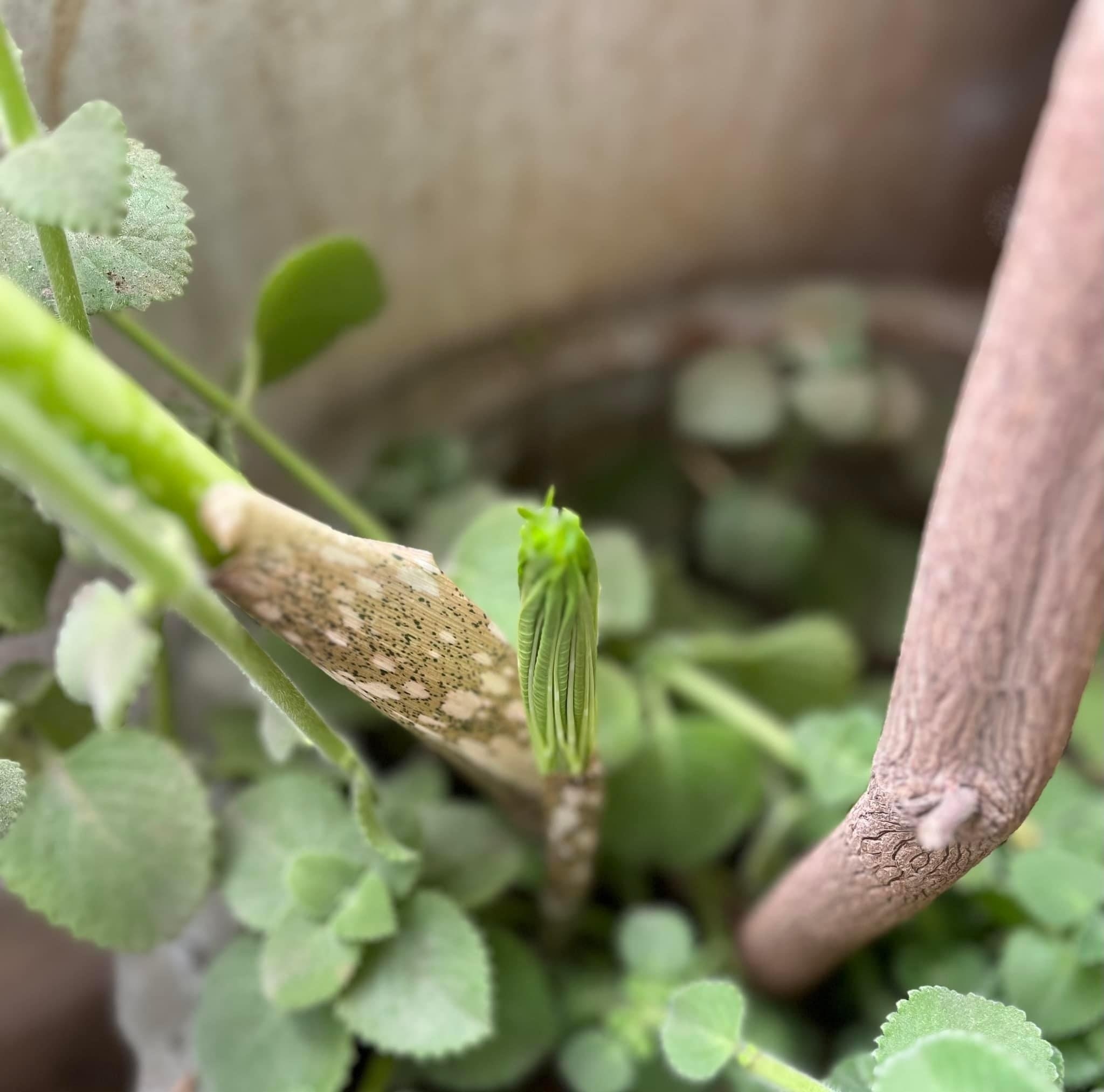 किसान चाहे गांव में जमीन पर खेती करे, चाहे शहर में गमले में वो किसान ही होता है. अपने खेतों की भी वो घर की तरह ही हमेशा देखभाल करता है. पौधे और फसल भी उसके परिवार के ही सदस्य होते हैं - और हरियाली ही किसान के लिए खुशहाली होती है. एक दिन जब मैं पानी देने गया और दूर से ही देखा गमले में कोई नई चीज नजर आ रही है. थोड़ा करीब पहुंचा तो लगा जैसे कोई सांप हो. जब तक पत्ते निकल कर नहीं आते, जिमीकंद का पौधा ऐसा ही लगता है.