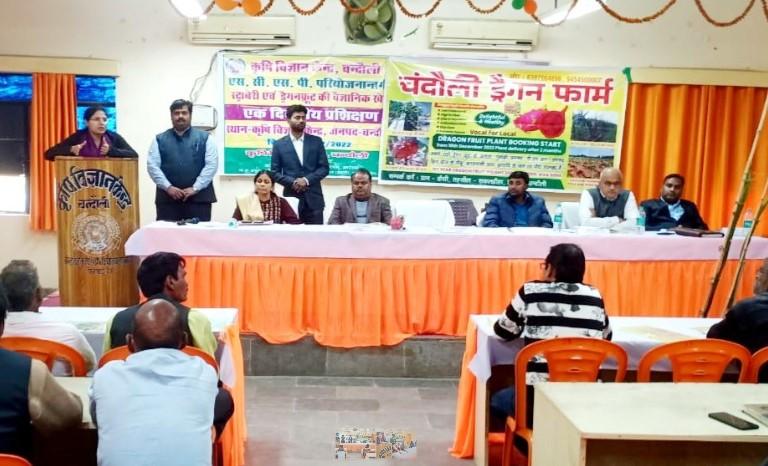 इसी कड़ी में स्ट्राबेरी और ड्रैगन फ्रूट की खेती को बढ़ावा देने के लिए कृषकों का एक प्रशिक्षण कार्यक्रम चंदौली के कृषि विज्ञान केन्द्र परिसर में आयोजित किया गया. कार्यक्रम के दौरान कृषि विज्ञान केंद्र के वैज्ञानिकों द्वारा कृषकों को प्रशिक्षण के दौरान पूरी विस्तार से जानकारी व उससे लाभ के बारे में बताया गया. कार्यक्रम के दौरान जिलाधिकारी श्रीमती ईशा दुहन ने प्रशिक्षण में प्रतिभाग करने वाले कृषकों से स्ट्राबेरी एवं ड्रैगन फ्रूट की खेती को जनपद में बढ़ावा देने हेतु आवाहन किया. उन्होंने कहा कि कार्यक्रम आयोजन का मुख्य उद्देश्य है कि जनपद के किसान बंधुओं को पारम्परिक खेती के अलावा छोटे-छोटे जगहों पर स्ट्राबेरी एवं ड्रैगन फ्रूट की खेती की जानकारी दिलाकर उनके आय में बढ़ोतरी कर सकें.