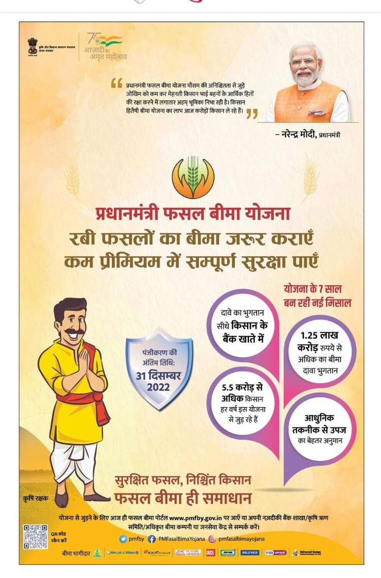 > कम वर्षा अथवा प्रतिकूल मौसमीय परिस्थितियों से बुवाई नही होने की स्थिति में (निष्फल/ बाधित बुबाई) फसलों पर मुआवजा दिया जाता है.