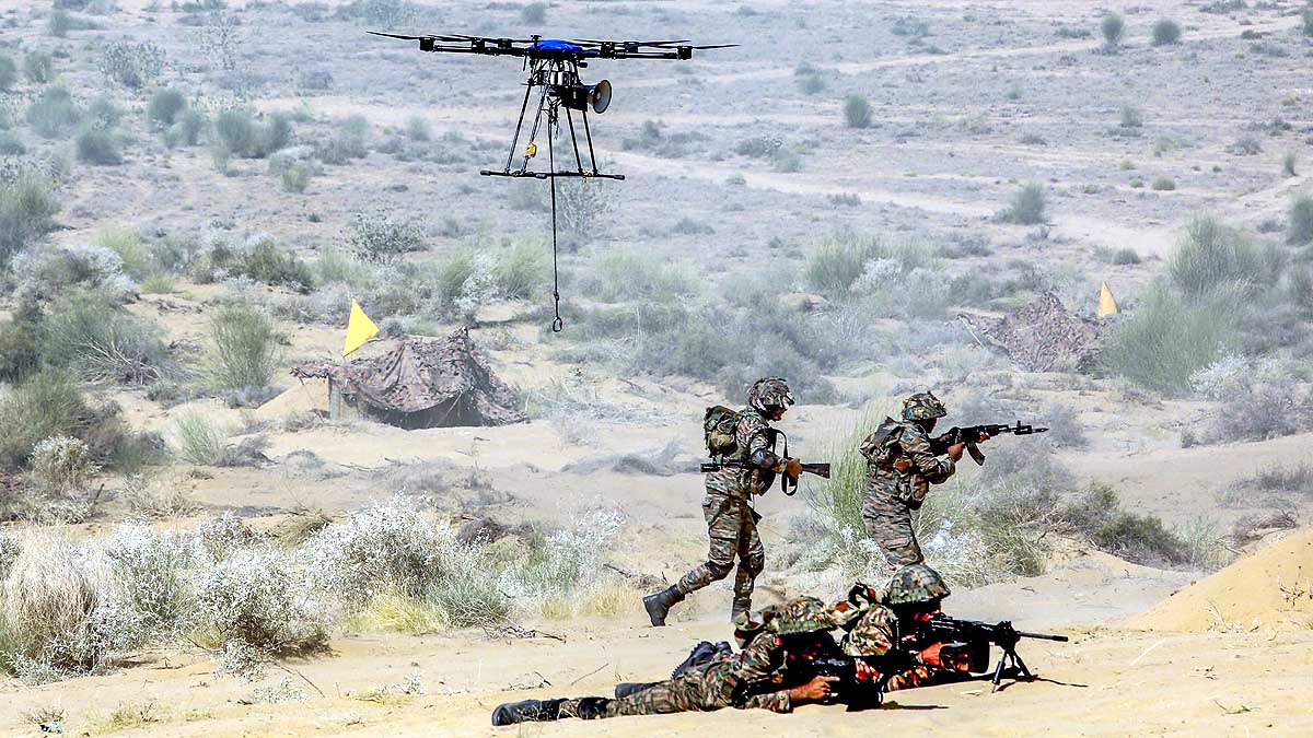 यह सब इंटीग्रेटेड बैटलफील्ड ऑपरेशंस (एकजुट जंग की कार्रवाई) का हिस्सा था. सेना अब टेक्नोलॉजी से चलने वाली जंग पर जोर दे रही है. साउदर्न कमांड के जीओसी लेफ्टिनेंट जनरल धीरज सेठ ने कहा कि मरू ज्वाला एक्सरसाइज में हाल ही में शामिल स्पेशलाइज्ड ड्रोन प्लाटून 'आश्नि प्लाटून' को दिखाया गया है. Photos: PTI