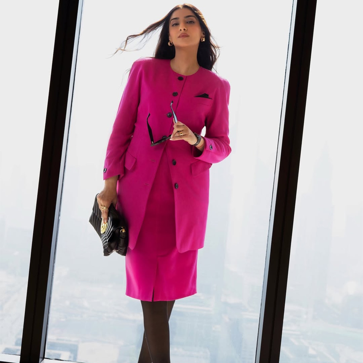 सोनम ने पिंक कलर के फॉर्मल लेकिन फैशनेबल आउटफिट में कई तस्वीरें पोस्ट कीं. वो पेंसिल कट स्कर्ट के साथ ब्लेजर टीम अप किए नजर आईं. साथ में हैंडबैग और ब्लैक शेड्स मैच किए थे.