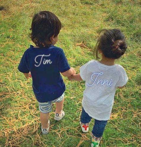पहने और इनाया व्हाइट कलर की टी-शर्ट में दिखी. तैमूर की टी-शर्ट पर TIM और इनाया की टी-शर्ट पर INNI लिखा हुआ है.