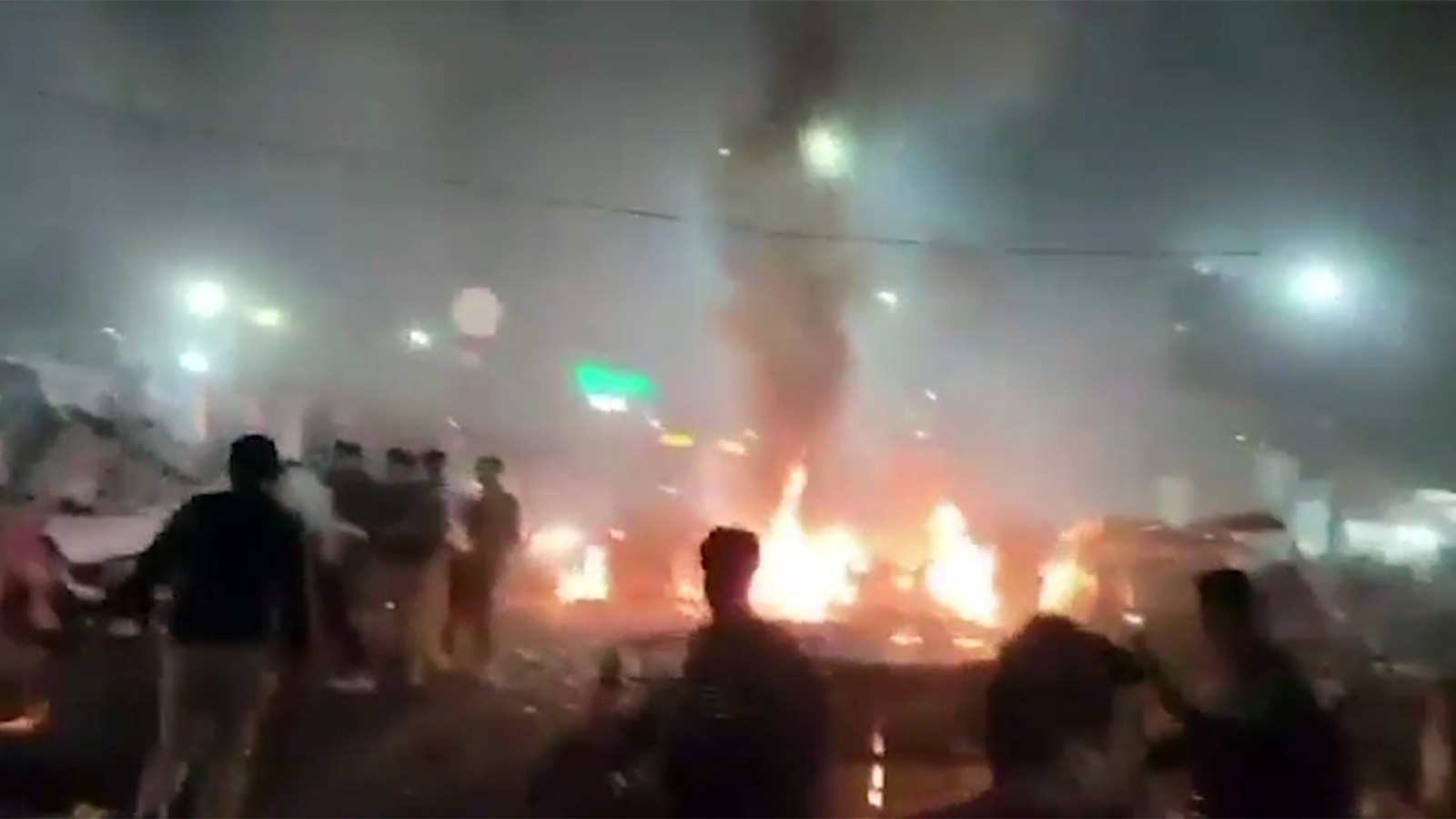 चारों ओर आग की लपटें और घना धुआं उठ रहा है, जबकि एक पुलिसकर्मी घटनास्थल की ओर दौड़ता नजर आ रहा है. हालात इतने भयावह थे कि चंद सेकंड में पूरा इलाका धुएं से ढक गया. पुलिस और राहत टीमों ने जान जोखिम में डालकर लोगों को सुरक्षित जगहों पर पहुंचाने का काम शुरू किया.