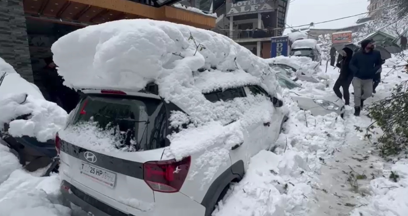 भारी बर्फबारी का असर हिमाचल प्रदेश में देखने को मिला है. पिछले कई घंटों से मनाली में बर्फबारी रुक‑रुक कर हो रही है. लगातार हो रही बर्फबारी के कारण सड़कें फिसलन भरी हो गई हैं और यातायात व्यवस्था पूरी तरह चरमरा गई है. एनएच-3 पर कई किलोमीटर लंबा ट्रैफिक जाम लग गया है. (Photo: ITG)