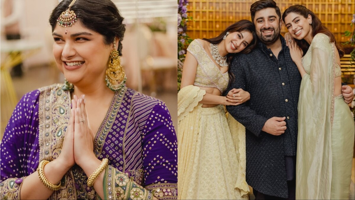 खुशी कपूर ने हल्के हरे रंग की ऑर्गेंजा साड़ी पहनी थी. उनके ब्रालेट ब्लाउज पर सुंदर कढ़ाई थी. खुशी ने गले में पतला नेकलेस पहना और बालों को हाफ बांधा हुआ था. दोनों बहनें इस दौरान बेहद खूबसूरत लग रही थीं. उन दोनों का ही लुक पारंपरिक और मॉर्डन टच का बेहतरीन संतुलन था.
