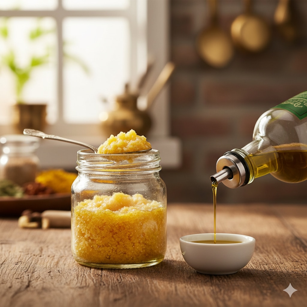देसी घी और ऑलिव ऑयल दोनों ही पेट की चर्बी कम करने वाले फूड्स में गिने जाते हैं. ऑलिव ऑयल में मौजूद मोनोअनसैचुरेटेड फैट शरीर के फैट के मेटाबॉलिज्म को बढ़ावा देता है जिससे वो जमा नहीं हो पाता है जबकि घी पाचन में मदद करता है और कई जरूरी विटामिन्स देता है. दोनों को सही मात्रा में शामिल कर आप स्वाद और पोषण में समझौता किए बिना पेट की चर्बी कम कर सकते हैं.