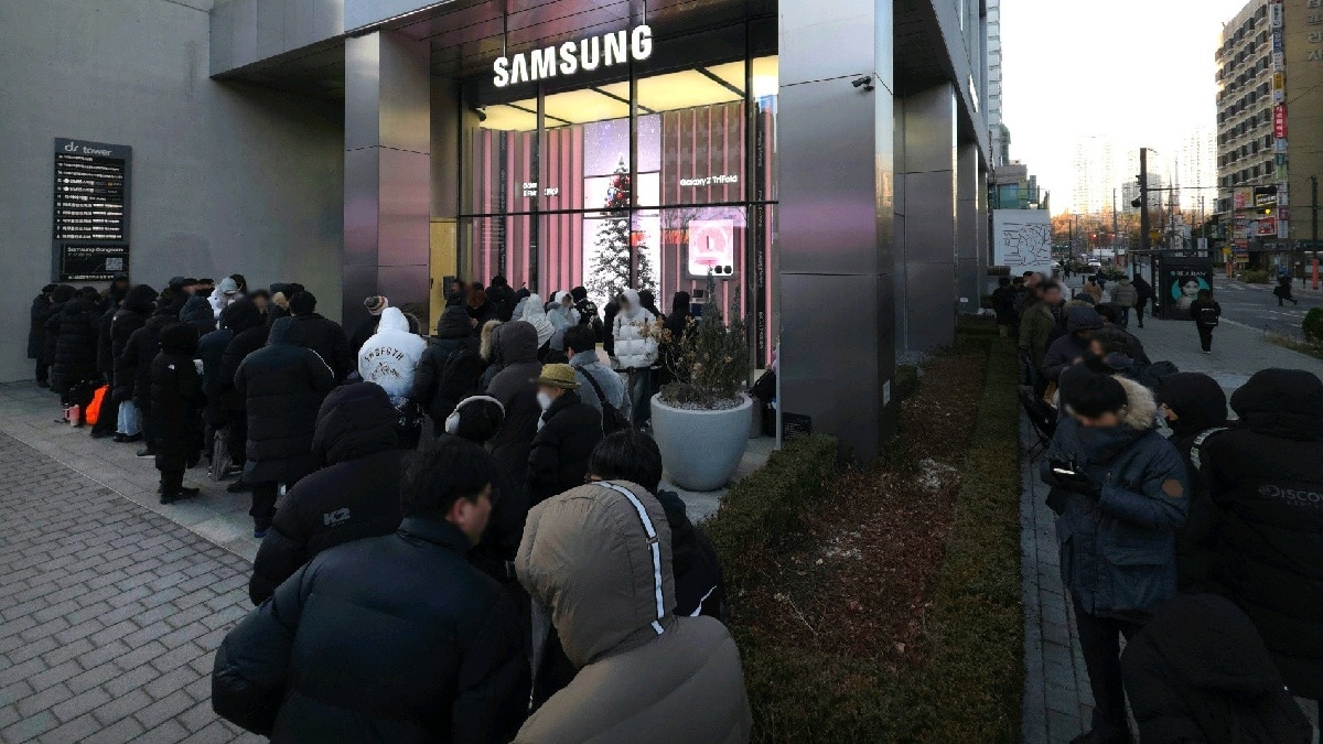 इस तरह का नजारा अक्सर iPhone के लिए देखा जाता है. लेकिन सैमसंग के ट्राईफोल्ड ने इस पूरी कहानी को बदल दिया है. Galaxy Z TriFold कोरियन मार्केट में पहली बार सेल पर आया है. सैमसंग ने सियोल की कुछ तस्वीरें शेयर की हैं, जिसमें स्टोर के बाहर लोगों की लंबी लाइन दिख रही है. (Photo: Samsung)