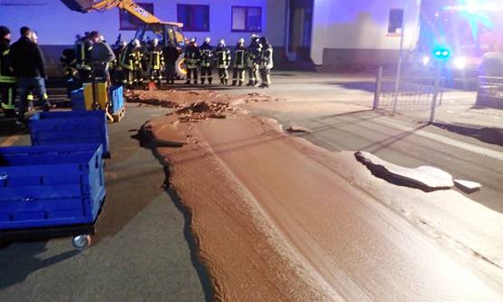 क्या आपने चॉकलेट की नदी देखी है? जर्मनी के एक शहर में अनोखा वाकया देखने को मिला है जहां एक सड़क पर लिक्विड चॉकलेट बहने लगा. इसके बाद फायर ब्रिगेड की टीम को बुलाना पड़ा.