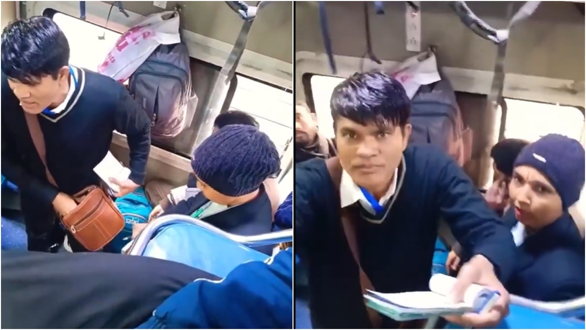 सोशल मीडिया प्लेटफॉर्म एक्स पर दो दिन पहले @JtrahulSaini नाम के हैंडल से ये वीडियो शेयर किया गया है. इसमें ब्लू स्वेटर पहना एक शख्स हाथ में रसीद लिए रेलयात्रियों की टिकट बनाता दिखाई दे रहा है. वह शख्स ऊपर वाले बर्थ पर बैठे यात्री के मोबाइल को देखते ही पूछता है - वीडियो बना रहा है, अब मैं टिकट बनाऊंगा ही नहीं. (Photo - X/@JtrahulSaini)