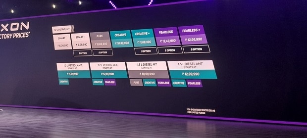 कंपनी ने नई नेक्सॉन 2023 को स्मार्ट, स्मार्ट+, स्मार्ट+ (एस), प्योर+, प्योर+ (एस), क्रिएटिव, क्रिएटिव+, क्रिएटिव+ (एस), फियरलेस, फियरलेस+ और फियरलेस+ (एस) वैरिएंट में लॉन्च किया है. इसके अलावा, टाटा ये एसयूवी कुछ नए रंगों में भी उपलब्ध है, जिसमें फियरलेस पर्पल, क्रिएटिव ओशन, प्रिस्टिन व्हाइट, प्योर ग्रे, डेटोना ग्रे और फ्लेम रेड का विकल्प मिलता है.