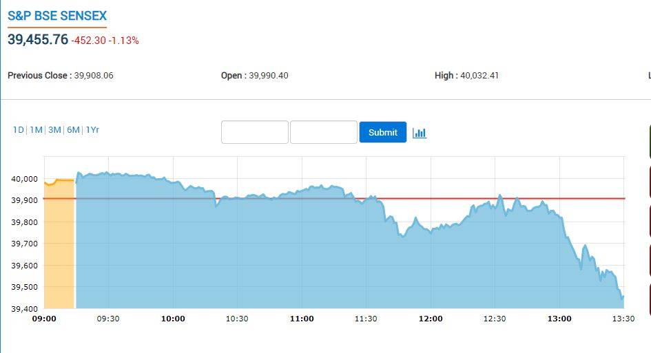 इससे पहले बजट भाषण के बीच भी शेयर बाजार में सुस्ती जारी रही. बजट भाषण के 40 मिनट बाद सेंसेक्स 150 अंक से ज्यादा टूट कर 39 हजार 800 के नीचे आ गया तो वहीं निफ्टी भी लाल निशान पर कारोबार करता दिखा.