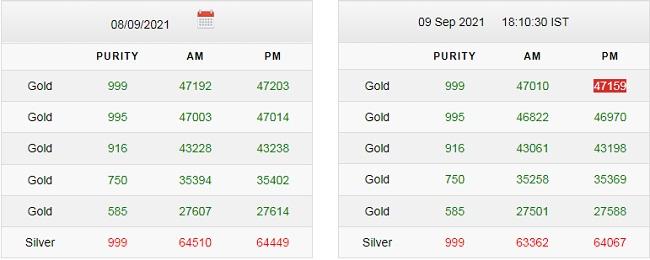 Gold Rate Silver Price Today 09 September 2021: भारत में सोना और चांदी की खरीदारी करना बेहद शुभ माना जाता है. आने वाले महीनों में त्योहार का सीजन शुरू हो जाएगा. तब सोना-चांदी की खरीदारी भी तेज हो जाएगी. हालांकि, उससे पहले ही भारतीय सर्राफा बाजार में लगातार कीमतों में उतार-चढ़ाव जारी है. इस हफ्ते के चौथे कारोबारी दिन यानी गुरुवार 9 सितंबर को सोना और चांदी की कीमतों में गिरावट देखने को मिली है.
