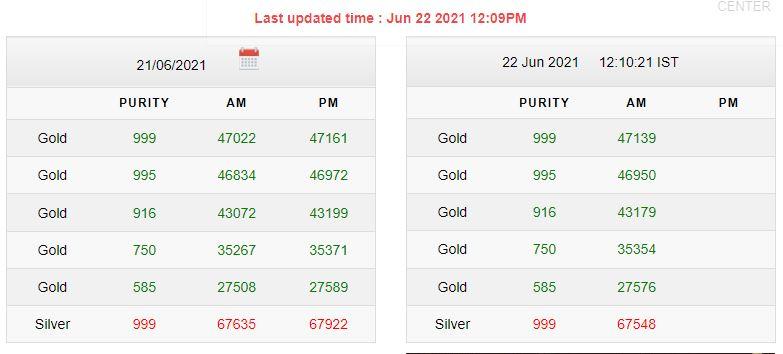 | शुद्धता | मंगलवार सुबह का भाव | मंगलवार शाम का भाव | |