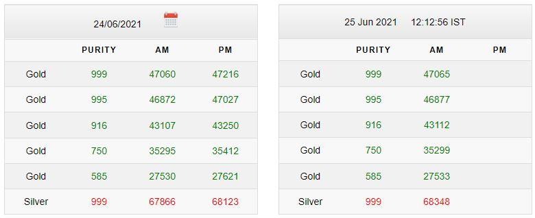 | शुद्धता | शुक्रवार सुबह का भाव | शुक्रवार शाम का भाव | |