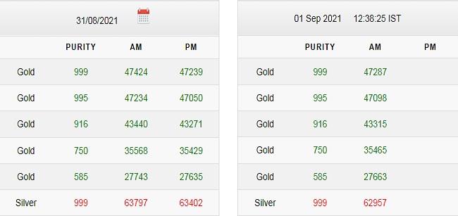 Gold, Silver Price Today September 1st, 2021: नए महीने की शुरुआत के साथ ही सोने के रेट में मामूली तेजी आई है. साथ ही चांदी की कीमतों में गिरावट दर्ज की गई है. पिछले कारोबारी दिन यानी 31 अगस्त के मुकाबले आज सोना 48 रुपये महंगा हुआ है.