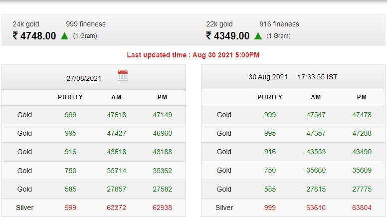| शुद्धता | सोमवार सुबह का भाव | सोमवार शाम का भाव | |
