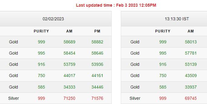 | सोना (प्रति 10 ग्राम) | 999 | 58882 | 58013 | 869 रुपये सस्ता |