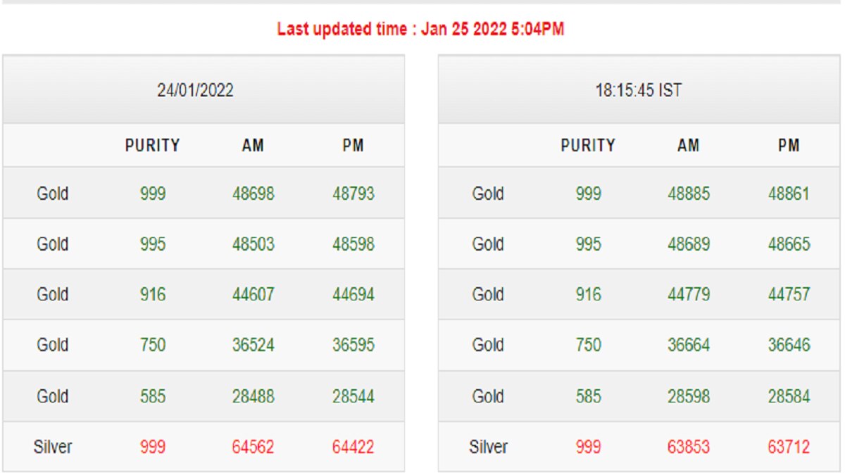 बता दें कि IBJA शनिवार-रविवार और घोषित छुट्टियों को छोड़कर हर रोज सोने-चांदी का रेट जारी करता है. 22 कैरेट और 18 कैरेट गोल्ड जूलरी के खुदरा रेट जानने के लिए 8955664433 पर मिस्ड कॉल दे सकते हैं. कुछ ही देर में एसएमएस के जरिए रेट्स मिल जाएंगे. इसके अलावा लगातार अपडेट्स की जानकारी के लिए www.ibja.com या ibjarates.com पर देख सकते हैं.