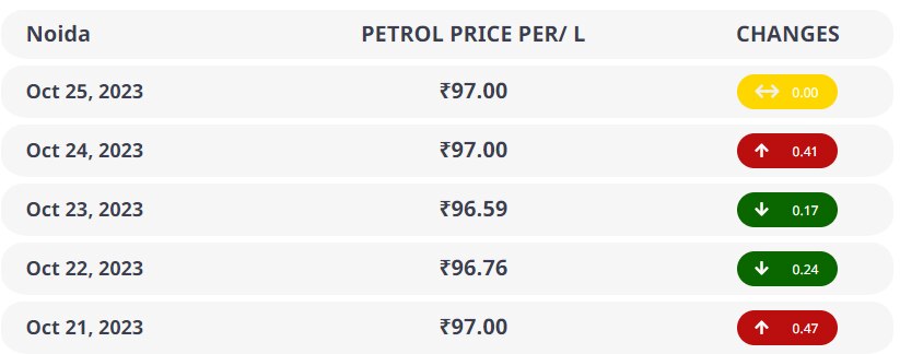 नोएडा में पेट्रोल की कीमतों में गिरावट