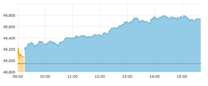 देश में कोरोना की भयावह हालत के बावजूद इस हफ्ते शेयर बाजार में लगातार तेजी दिख रही है. बुधवार को बॉम्बे स्टॉक एक्सचेंज का सेंसेक्स सुबह 122 अंकों की तेजी के साथ 49,066.64 पर खुला. दोपहर 3 बजे के बाद सेंसेक्स 857अंकों की भारी उछाल के साथ 49,801.48 पर पहुंच गया. कारोबार के अंत में सेंसेक्स 789.70 अंकों की तेजी के साथ 49,733.84 पर बंद हुआ.