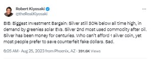 'Rich Dad Poor Dad' के लेखक ने कहा अनुमान जाहिर करते हुए कहा था कि चांदी 3 से 5 साल के लिए 20 डॉलर के आस-पास बनी रह सकती है, लेकिन आने वाले समय में यह 100 डॉलर से 500 डॉलर तक चढ़ सकती है. हर कोई इसे खरीद सकता है, गरीब भी चांदी को खरीद सकता है. कियोसाकी ने अपनी एक्स पोस्ट में डॉलर को फेक और चांदी को सेफ करार दिया था.