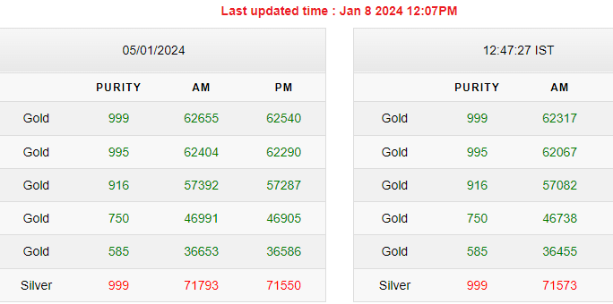 | शुद्धता | शुक्रवार शाम के रेट | सोमवार सुबह का भाव | कितने बदले रेट | |