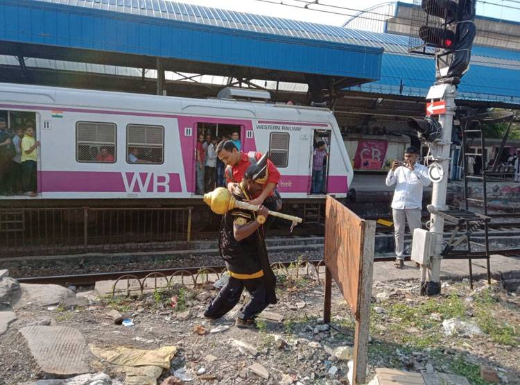 रेलवे ने इन तस्वीरों के साथ लिखा है-अनधिकृत रूप से पटरी पार ना करें, यह जानलेवा हो सकता है. अगर आप अनधिकृत तरीके से पटरी को पार करते हैं तो सामने यमराज खड़े हैं. मुंबई में पश्चिम रेलवे द्वारा आरपीएफ के साथ मिलकर 'यमराज' के कैरेक्टर के माध्यम से लोगों को जागरूक किया जा रहा है.