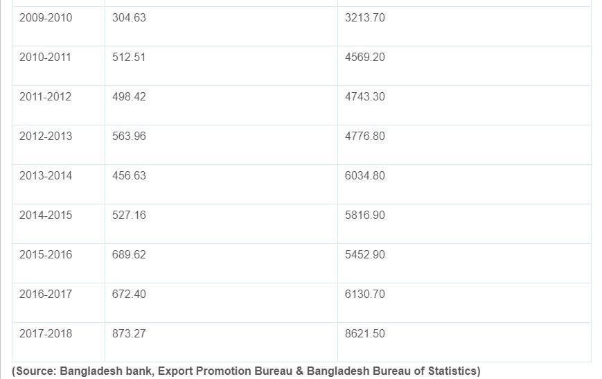 बीते कुछ सालों में बांग्लादेश के भारत को एक्सपोर्ट में बढ़ोतरी हुई है तो वहीं इंपोर्ट में भी इजाफा हुआ है. साल 2017-2018 में बांग्लादेश ने भारत को 873.27 मिलियन डॉलर का एक्सपोर्ट किया. वहीं भारत से 8621.50 मिलियन डॉलर का इंपोर्ट बांग्लादेश के लिए हुआ. ये हैं बीते 10 साल के एक्सपोर्ट और इंपोर्ट के आंकड़े.....
