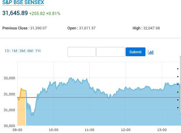 सप्ताह के दूसरे कारोबारी दिन मंगलवार को सेंसेक्स खुलने के साथ 350 अंक लुढ़क कर 31 हजार के स्तर पर था तो वहीं निफ्टी भी करीब 30 अंक की गिरावट के साथ 9,100 अंक के स्तर पर था. लेकिन कुछ देर बाद भारतीय बाजार में रिकवरी भी दिखी और सेंसेक्स-निफ्टी हरे निशान पर कारोबार करते दिखे. शेयर बाजार में बढ़त दोपहर बाद भी जारी रही.