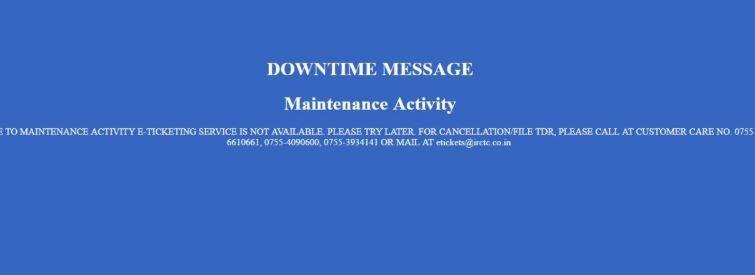 वेबसाइट के ठप होने की स्थिति में जो मैसेज आ रहा था उसमें मेंटेनेंस का हवाला दिया गया है. हालांकि प्रभावित यूजर्स के लिए हेल्पलाइन नंबर भी जारी किए गए हैं. किसी भी तरह की परेशानी होने की स्थिति में यूजर्स इन नंबरों पर कॉल कर सकते हैं- 0755-6610661, 0755-4090600, 0755-3934141. इसके अलावा etickets@irctc.co.in पर भी अपनी समस्या को लिख कर ईमेल किया जा सकता है.