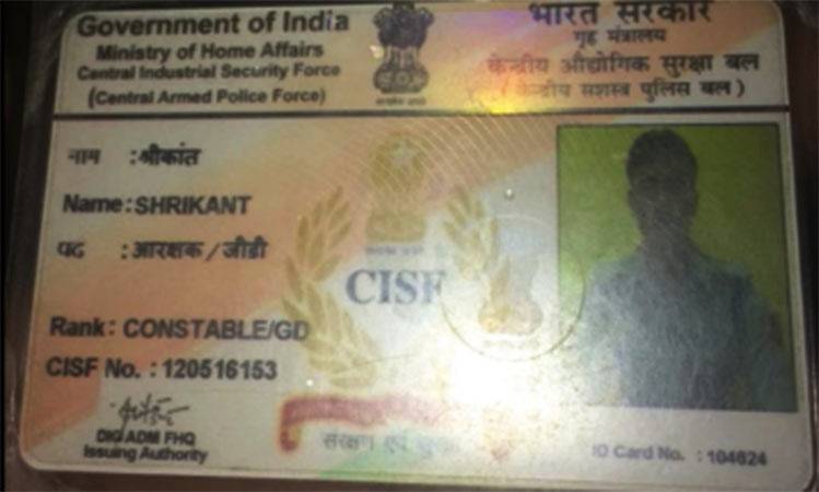 फर्जीवारे के लिए इस आधार कार्ड का इस्तेमाल किया जा रहा है. यह कार्ड मुंबई एयरपोर्ट पर तैनात CISF जवान श्रीकांत का है.