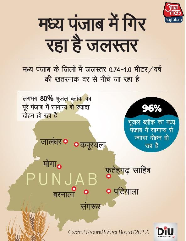 सेंट्रल ग्राउंड वाटर बोर्ड (CGWB) के आंकड़ों के अनुसार, पूरे पंजाब में लगभग 80 प्रतिशत भूजल ब्लॉक का ‘अति-दोहन’ हो रहा है. इसमें से लगभग 96 प्रतिशत अकेले मध्य पंजाब क्षेत्र में है.