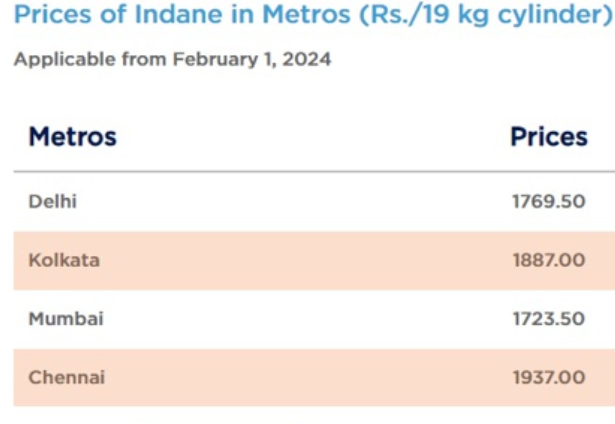 बीते 1 जनवरी 2024 19 किलोग्राम वाले सिलेंडर के दाम में मामूली राहत दी गई थी. ऑयल मार्केटिंग कंपनियों ने 19 किलोग्राम वाले कॉमर्शियल गैस सिलेंडर की कीमतों में कटौती की थी. जिसके बाद दिल्ली से मुंबई तक पहली कॉमर्शियल गैस सिलेंडर 1.50 रुपये से लेकर 4.50 रुपये तक सस्ता हो गया था. बीते महीने की गई कटौती के बाद दिल्ली में 19 किलो वाले सिलेंडर की कीमत 1755.50 रुपये का और मुंबई में दाम 1708 रुपये का कर दिया गया था.