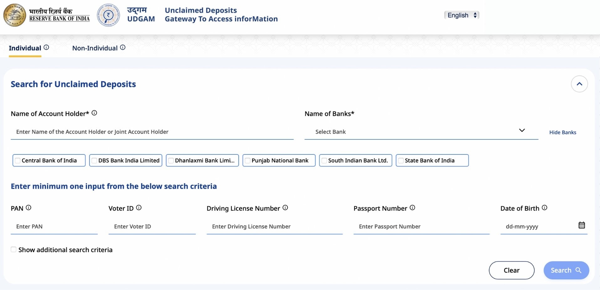 अप्रैल, 2023 में भारतीय रिजर्व बैंक (RBI) ने दावा नहीं की गई जमा राशि का पता लगाने के लिए सेंट्रलाइज वेब पोर्टल को शुरू करने की घोषणा की थी. आरबीआई (RBI) की तरफ से शुरू किये गए इस पोर्टल पर फिलहाल भारतीय स्टेट बैंक (SBI), पंजाब नेशनल बैंक (PNB), सेंट्रल बैंक ऑफ इंडिया (Central Bank of India), धनलक्ष्मी बैंक (Dhanlaxmi Bank Ltd), साउथ इंडियन बैंक (South Indian Bank Ltd) , डीबीएस बैंक इंडिया (DBS Bank India Ltd) और सिटी बैंक (Citi Bank) में बिना दावे वाली जमा के बारे में जानकारी उपलब्ध है.