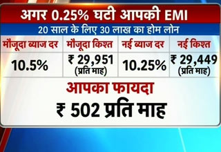 भारतीय रिजर्व बैंक ने ब्याज दरें बढ़ा दी है. बैंक ने रेपो रेट 0.25 फीसदी बढाकर 7.50 फीसदी कर दिया है. रेपो रेट बढ़ने से सभी बैंक अपनी ब्याज दरें बढ़ा सकते हैं और इससे आपकी ईएमआई भी बढ़ जाएगी. रेपो रेट बढ़ने की खबर से शेयर बाजार में भी भारी गिरावट दर्ज की गई.
