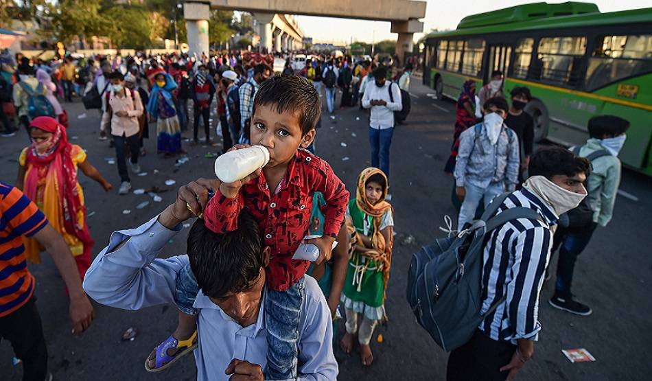 था...वो मजदूर चल पड़ा है, सिर पर गठरी लादे, हाथ में बच्चा उठाए.