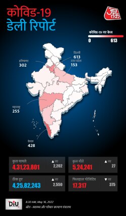 देश में अब तक कोरोना वायरस के 4,31,23,801 केस सामने आ चुके हैं. सबसे ज्यादा केस दिल्ली में (613 केस) में आए हैं. वहीं केरल में 428, हरियाणा में 302 , महाराष्ट्र में 255 और उत्तर प्रदेश में 153 केस सामने आए हैं. देश में कुल मिले केस में से 79.52% केस इन्हीं राज्यों में मिले हैं. दिल्ली में अकेले 27.84% केस मिले हैं.